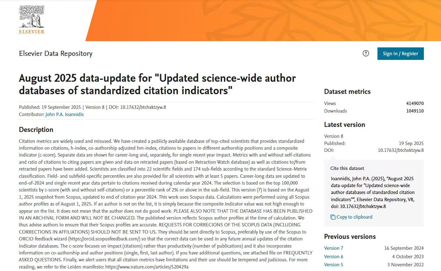 我校多位学者入选2025年度全球前2%顶尖科学家榜单