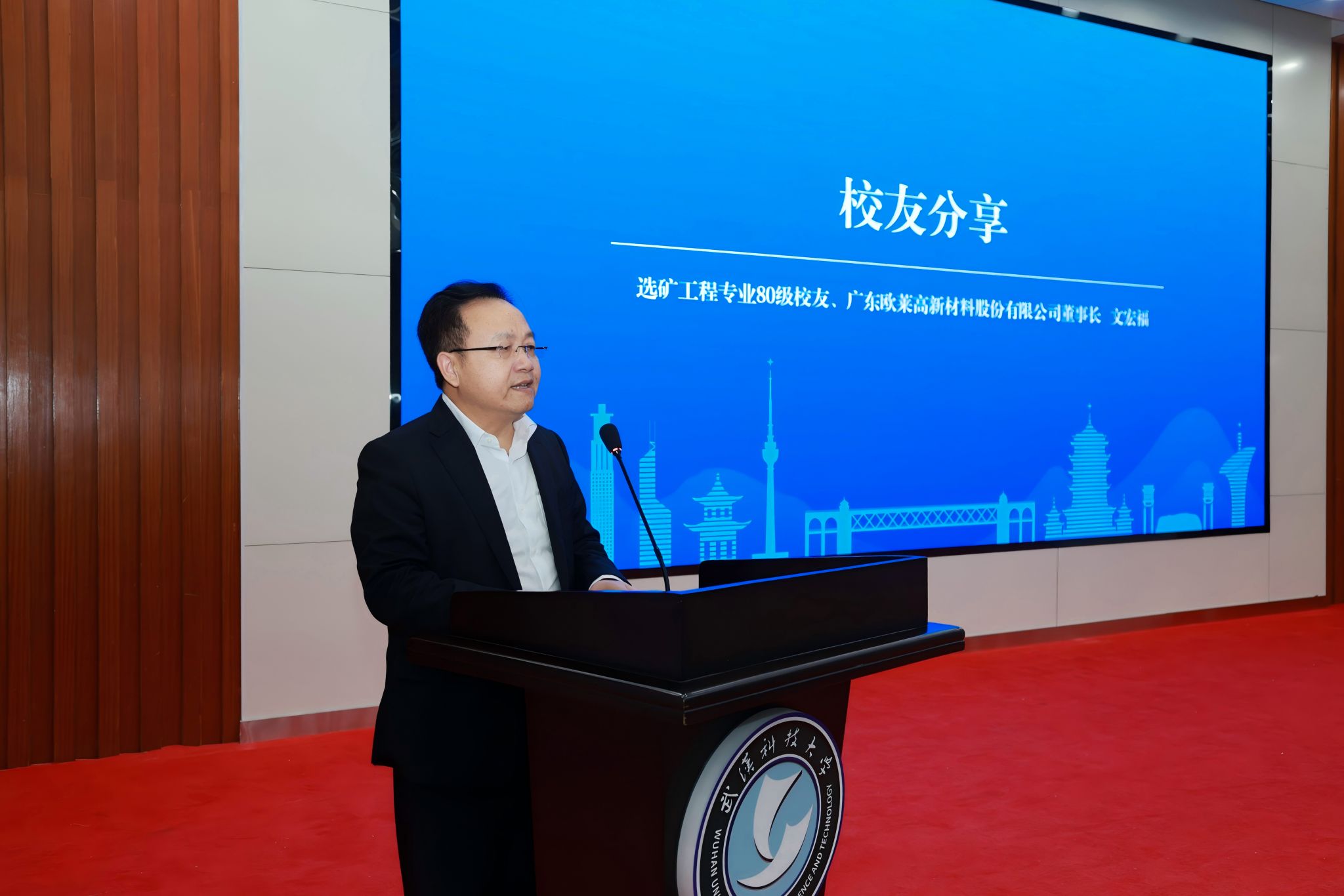 “作为国家级专精特新‘小巨人’重点企业、国家高新技术企业、国家知识产权优势企业,我们将依托湖北的产业基础,进一步加强交流与合作。”我校选矿工程专业1980级校友、广东欧莱高新材料股份有限公司董事长文宏福在发言中回顾了从武科大求学到投身产业的奋斗历程,介绍了企业打破国外在溅射靶材领域垄断的努力,并表达了回归湖北、反哺母校的真挚情怀。