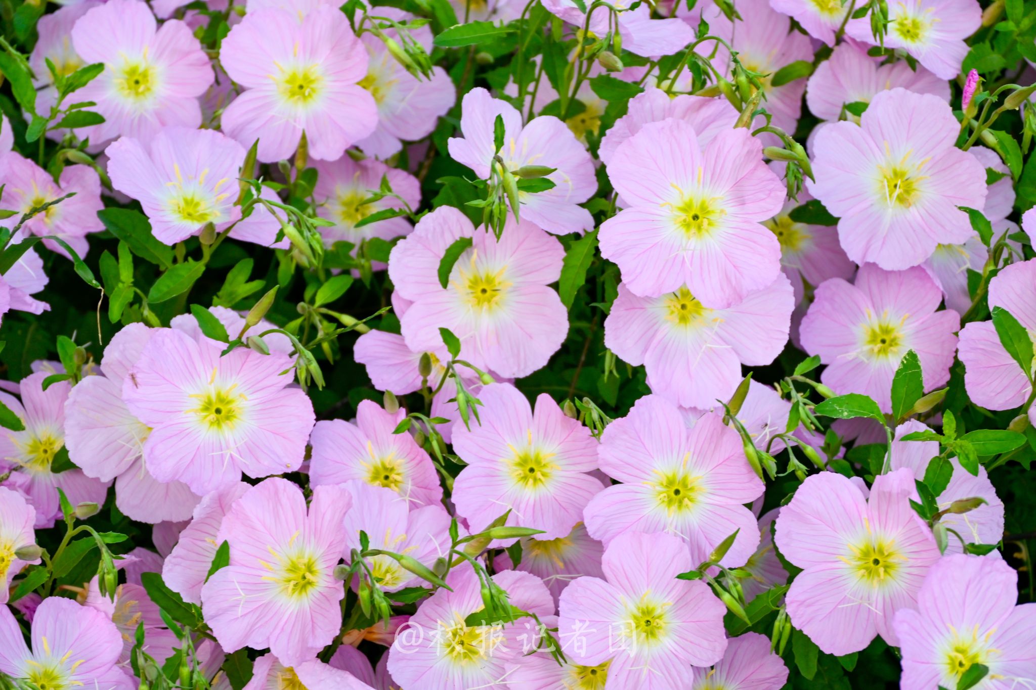 美丽月见草是柳叶菜科月见草属多年生草本植物,别名夜来香、粉花月见草。花期时,花朵单生于枝条顶端,花瓣呈倒卵形,花色多为粉白色或淡粉色,傍晚至清晨盛开时如杯盏绽放,散发淡雅香气。它适应性极强,耐寒耐旱,可作为园林观赏植物。它的花语是“默默的爱”与“不羁的浪漫”,因夜晚绽放却不张扬的特性,象征着深沉而含蓄的情感。花期在5-10月,我校沁湖边、竹林里和理学院后可见。