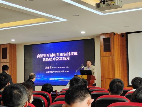 会后,周东华教授就演讲内容回答在场师生的提问,会议上充满了学术氛围。本次报告不仅给听众带来了关于高速列车制动系统实时故障诊断技术的最新研究成果,也为在场师生提供了相关领域的想法与思路。